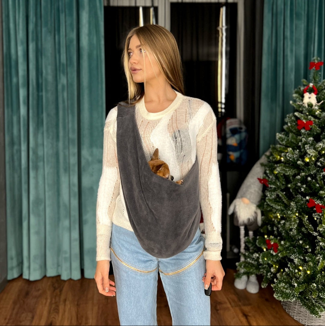 🧣 Grey Hand-made Cozy Pet Sling Carrier – 2-15 lbs / 1-7 kg (Autumn/Winter)